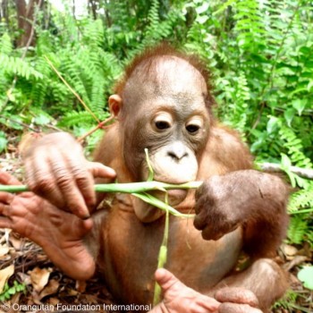 OCCQ RangdaIn many ways, Rangda (pronounced “wrong-duh”) is much like the rest of the infant orangutans at OFI’s Orangutan Care Center and Quarantine (OCCQ); he loves climbing trees, playing with his friends, and eating fruit. But within these preferences, Rangda finds little ways to break the norms of behavior. His unique climbing habits and particular affinity for mud are just a few of the ways he makes himself stand out.