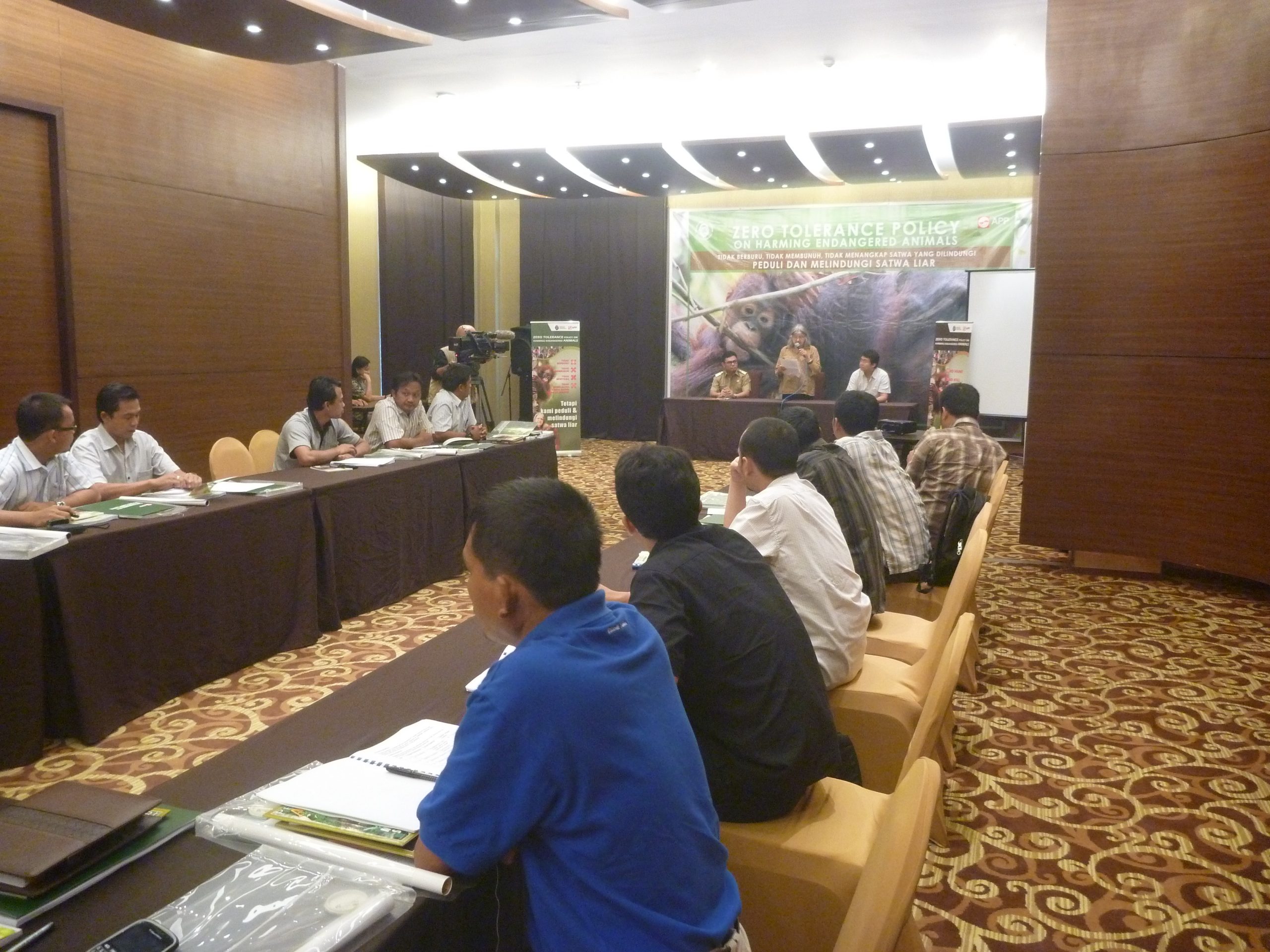 OFI’s Zero Tolerance/No-Kill Program training sessions are led by Dr. Galdikas (on a volunteer basis) along with four professional trainers. The first four-day workshop opened in Pangkalan Bun with a speech given by Regent Pak Ujang of Kotawaringin Barat, who personally welcomed the twenty-one participating APP supervisors and managers, and emphasized the importance of this new collaborative conservation program.